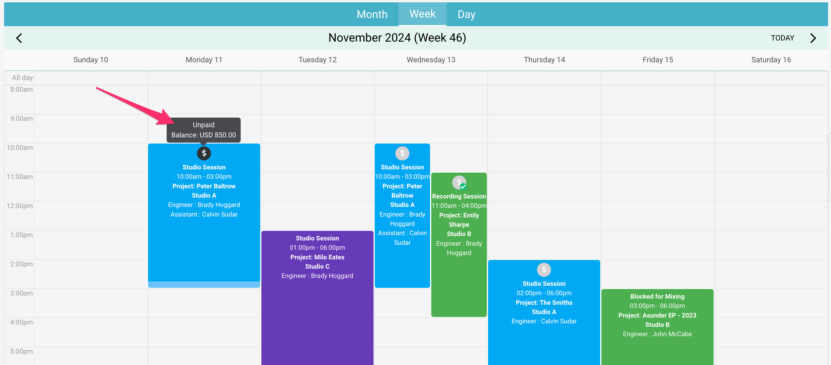 Your Calendar Bookings can now be linked with Invoices within Sonido to streamline client billing and provide quicker visual insights into which sessions on your Calendar are unpaid, partially paid, or paid in full. The key to viewing these visual insights is in linking your calendar events to an invoice, and Sonido helps to make this process easy.